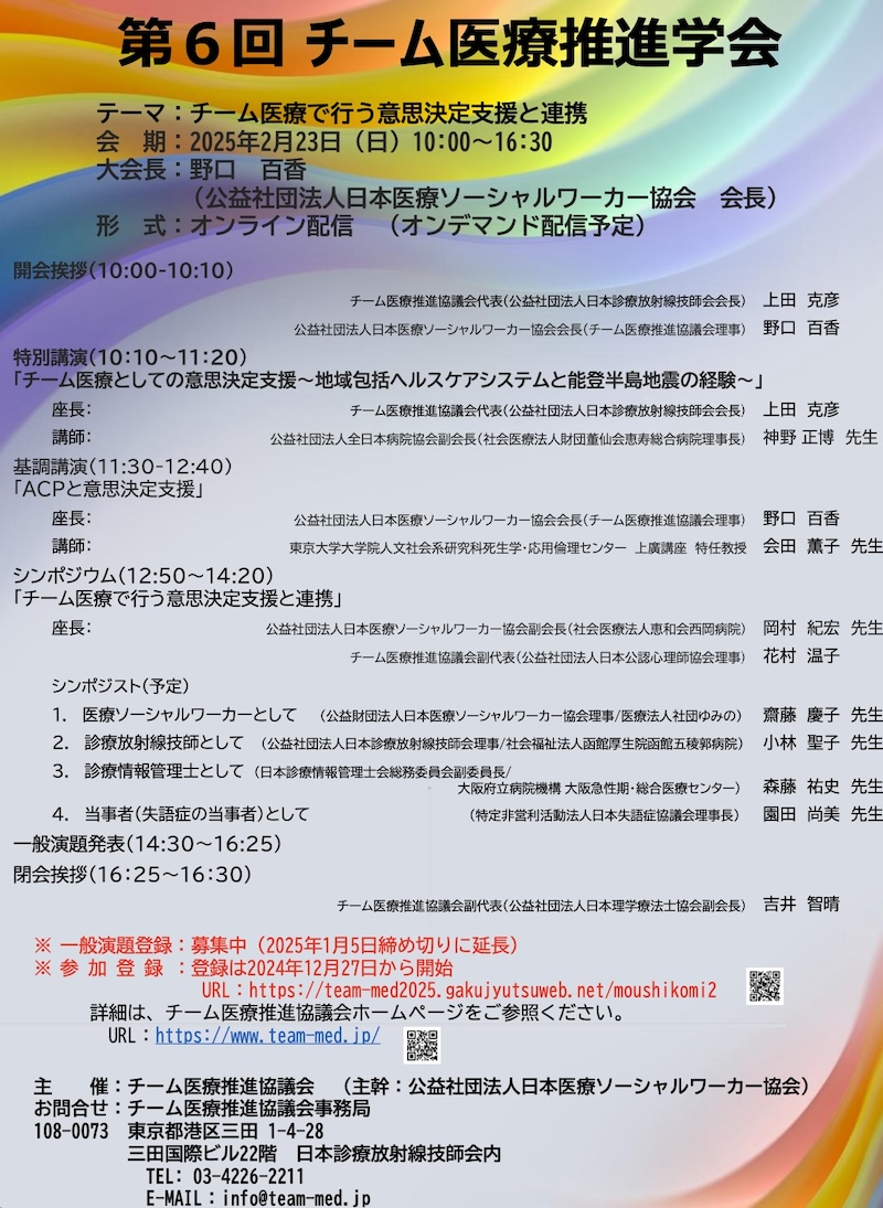 参加登録を開始(12月27日から)、演題登録は1月5日(日)まで。第6回チーム医療推進学会の開催並びに演題募集について