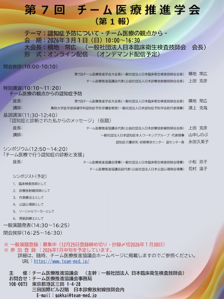 令和7年度(2025年度)第7回チーム医療推進学会開催のご案内(第1報)