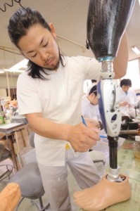 義肢装具士は、医師の処方に従ってこれら義肢・装具を製作し、また、使用者の体へ合わせる(適合)することを業務とする専門職です。2013年7月現在、約4000名の有資格者(国家資格)がいます。