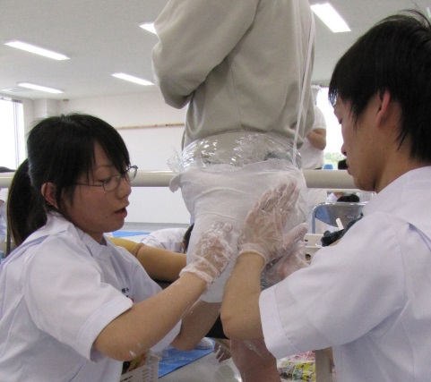 次に、使用者の体のうち義肢・装具と接触する部分の型を石膏包帯などで得て(採型)、この型を基に材料やパーツの加工を行って義肢・装具を組み立てます。義肢や装具の「適合」とは、ただ単に使用者の体の形に合っているということだけでなく、目的とする機能を発揮し、さらに個々別の生活環境にも合っていなければなりません。
